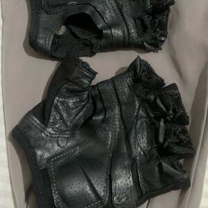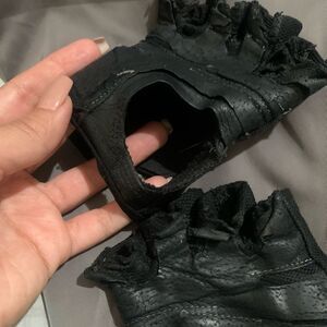 Very well used lifting gloves, right thumb missing, great for a movie prop or costume, can still be used at the gym but you might get a callus in the right index finger because there is a hole