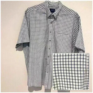 Harbor Bay Big And Tall Men's Navy/White Plaid Button Up Short Sleeved Shirt 2XL.