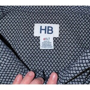 Harbor Bay Button Down 4XLT Men's Black White Printed Short Sleeve Pocket Cotton