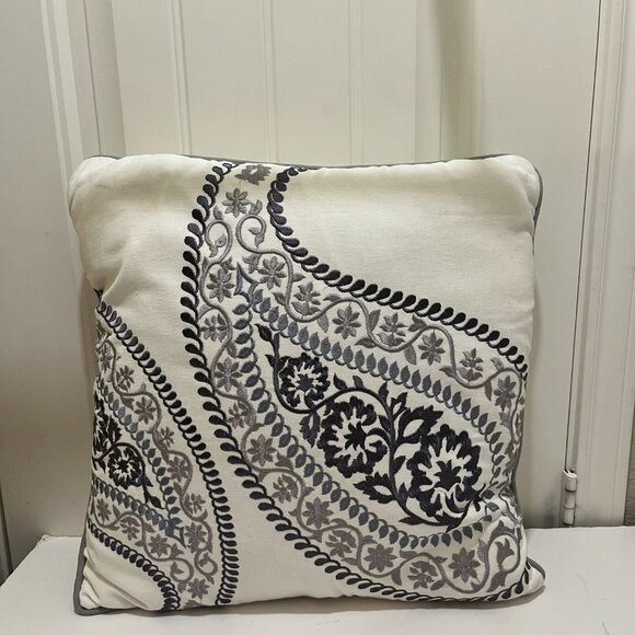 Harbor House Stella White Navy Paisley Embroidered Square Bed Throw Pillow 17X17
