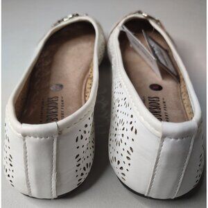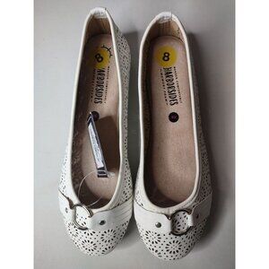These Harborsides Giovana flats, size 8 Wide, are a stylish choice with their white color, floral perforated design, and metal O-ring detail. They come brand new with tags.