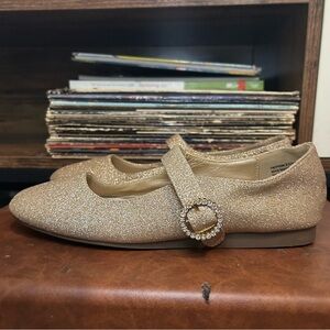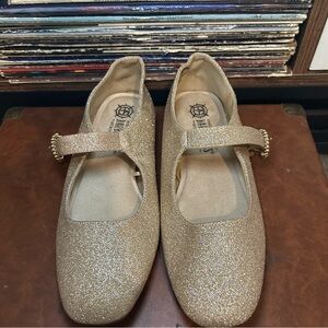 Harborsides Gold Glitter Mary Jane Flats | Rhinestone Buckle | Size 7