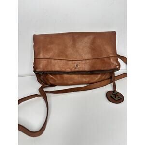 Harbour 2nd Anchor Love Leather Convertible Crossbody Flap Over Option Cognac brown. can adjust or take off straps to change the purse direction to long or a short flap over