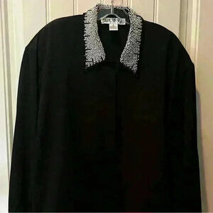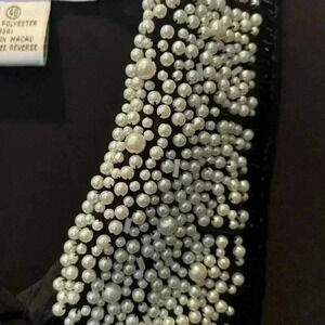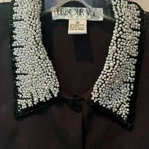 Harbour Vue Black Dress Shirt Size 40 Pearl Collar Stunning Holiday Party Chic