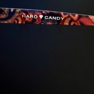 Vibrant patterned eyewear by Hard Candy. Bold and stylish design. Have your prescription lenses made in this beautiful, red multi-color Frame. The material is plastic, temples have a spring hinge for flexibility. This frame is brand new, never worn. The size is 50-17 with a 135 mm temple length.