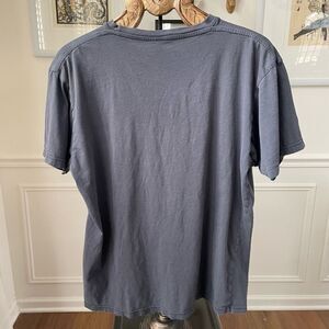 Hard rock Café 100% cotton Boston T-shirt, featuring an abstract guitar on the front with some embroidery detailing. The print is mildly distressed. There is a pinhole at the back neck that I didn’t notice until pictures. See photos. Measurements are approximate and taken while laying flat:26 inches shoulder two ham and 22 inches armpit to armpit. Perfectly broken in.
