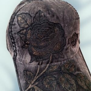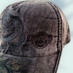 Hard Rock Cafe Acid Wash Black Rose Hat Baseball Cap Strapback Cotton Womens