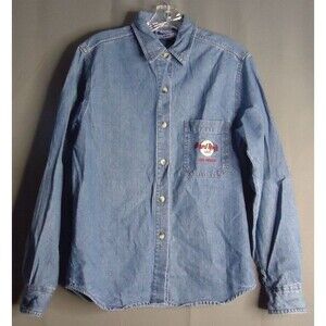 Item: Hard Rock Cafe Embroidered Decals Long Sleeve Button Denim Shirt Womens Medium