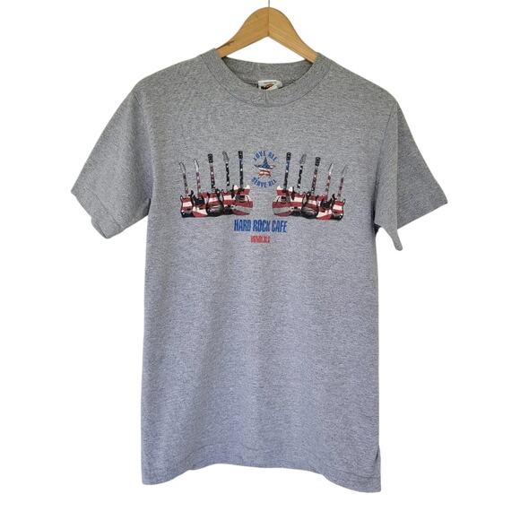 Hard Rock Cafe Honolulu T Shirt Gray Mens Size S Love All Serve All Guitar Cotton