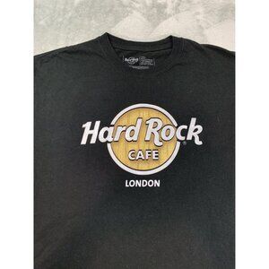 Hard Rock Cafe London Mens Large Black T-Shirt Gold Logo Crew Neck UAE