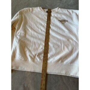 The Hard Rock Cafe Los Angeles Crewneck Sweatshirt is a medium-sized, ivory beige pullover designed for women. Made of cotton and featuring the iconic Hard Rock Cafe logo, this long sleeve sweatshirt is ideal for casual occasions and all seasons. With a regular fit and machine washable care instructions, this sweater embodies the Hard Rock Los Angeles theme in a solid design perfect for springtime wear. Made in the United States, this sweatshirt is a stylish and versatile addition to any wardrobe.