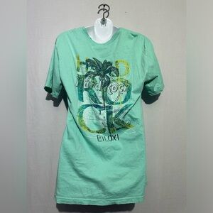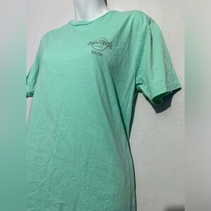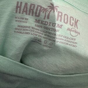 Casual mint green t-shirt with Hard Rock Cafe logo. Comfortable and stylish.