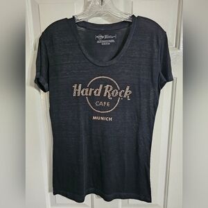 Hard Rock Cafe Munich Tee Women’s M Black Rhinestone Logo Graphic Shirt Grunge