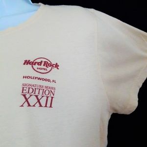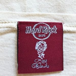 Ivory Ladies "junior baby-doll" T Shirt. Hard Rock Signature Series XXII 22 Ozzy Osbourne. Features a hand-painted stick figure, symbolizes Ozzy's larger than life stage persona. Limited Edition. Almost Vintage. Tagged size XL. Runs small so check measurements. Bust: 19"x2 flat across Length: 25" Condition: Preowned. Great Used Condition. NO stains. Thin and worn but no holes or rips. geminitiger7dez Band Travel Souvenir geminitiger7cco