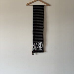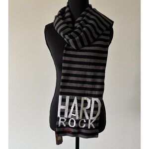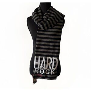 Hard Rock Cafe Striped Scarf Gray Black Unisex Winter Autumn Grunge Music NWT