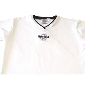 Hard Rock Cafe V-Neck Cotton Top, White/Black Trim