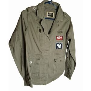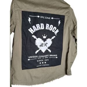 * Hard Rock Womens Army Green Jacket Small Guitar Co Military Style Distressed New With Tags $120.00