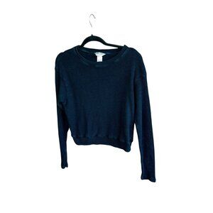 Hard Tail Forever Black Waffle Weave Cropped Sweater Casual Top Size Medium