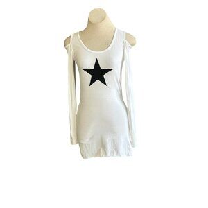 Hard Tail Forever White Black Star Cold Shoulder Bodycon Mini Dress Size Small