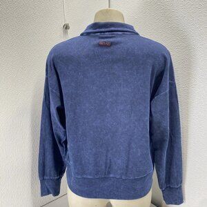 Hard Tail Forever Women’s Collar Half-Zip Mineral Wash Shirt – Blue – Size L