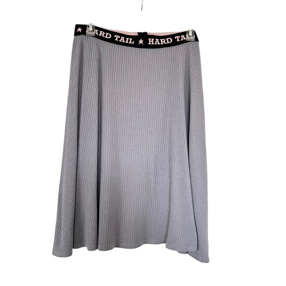 Hard Tail Gray Ribbed Jersey A-Line Elastic Waist Midi Skirt Size Medium