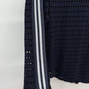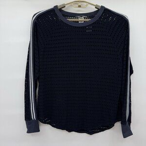 Hard Tail Sweater Pullover Sz Medium Navy Open Knit Racing Stripe Sleeves NWT