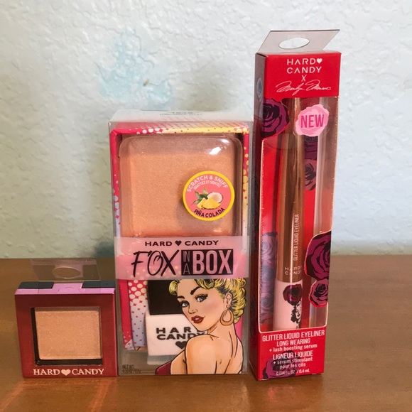 The bundle includes: eyeshadow flirty, highlighter, glitter liquid eyeliner. Final sale
