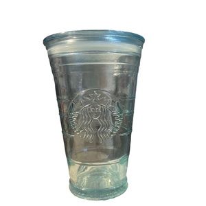 Hard to find!! No longer produced. 16 fluid ounces Recycled glass cup from Starbucks. Green with the logo on the front. Comes with acrylic lid no straw 😢. Excellent condition.
