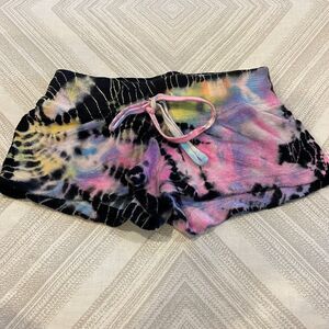 Hard Tail Girls colored Tie Dye Terry Drawstring Shorts. 2” inseam. Very short. Gently worn. Made of cotton & polyester. Size Medium 10/12.