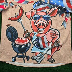Hardaddy Shirt Mens XL/2XL Button Up Pig Barbeque Patriotic American Flag Summer