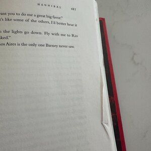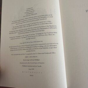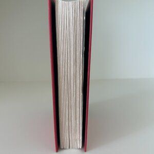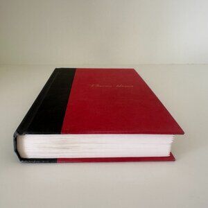 The hardcover book and pages are in overall good condition, but one page is dog-earred with a small tear and there is a stain on the last page that looks like coffee (both pictured)
