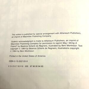 Hardcover 1997 MAY I BRING A FRIEND? by Beatrice Schenk De Regniers - A Caldecott Medal Winner - Good Condition