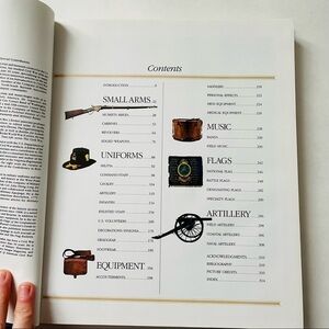 Table of Contents includes Small Arms, Uniforms, Equipment, Music, Flags, Artillery.