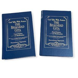 Two Volumes of The Bhagavad Gita Hardcover Book by Parmahansa Yoganada. Yogananda's translation of and commentary on the Bhagavad Gita unlocks the deeper meanings hidden in its symbology. Excellent condition. Has some faint pencil marks inside front cover of first book.