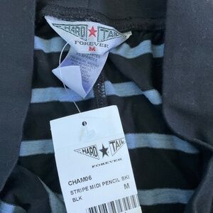 Hardtail pencil midi skirt black and blue stripes size M NWT