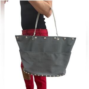 Hardware By Renee Gray Canvas Studded Tote Bag Oversized Utility Travel Bag