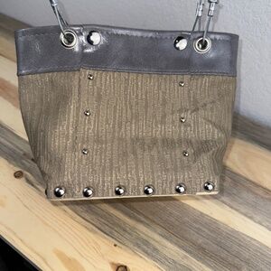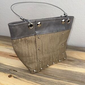 Hardwear by Renee Handbag Gray Silver Gold Wood Wire Industrial Studded SO COOL!