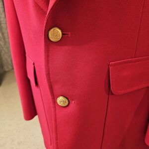 Hardwick Clothes Red Husker Blazer Sport Suit Coat Jacket fancy Buttons mens 40L. Eye catching nice red jacket. For costume or for daily wear. Item is in nice, preloved condition. Any spots or defects will be pointed out in listing. Item will be clean and double bagged for shipping. Please see photo for measurements. All measurements are as accurate as I can. Some variation in color and measurements can exist. Since I don’t accept returns, feel free to ask any questions. I want you to be completely thrilled with your purchase. Thank you for positive feedback!