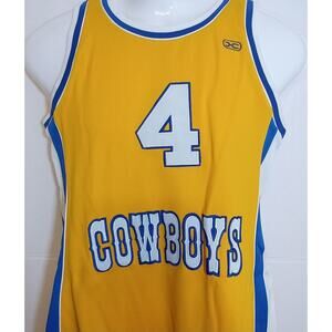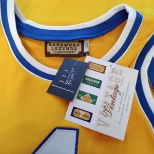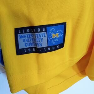 NWT. Celebrate your hoop heritage with the Hardwood Legends Joe Dumars McNee State Cowboys jersey. This classic basketball gear, sized large for a comfortable fit, showcases the vibrant yellow of the Cowboys complemented by the bold white lettering of the player's name and number. Crafted with care in Korea, the jersey embodies the spirit of the game and the legacy of a celebrated player. Featuring the iconic McNeese State Cowboys name on the front, this jersey is a must-have for any fan of the team or collector of basketball memorabilia. The jersey's dimensions, with a pit-to-pit measurement of 18 inches and a length of 32 inches, ensure a timeless look that's as authentic as it is comfortable. Whether you're courtside or reminiscing about old-school basketball, this jersey brings a piece of NBA history into your collection.