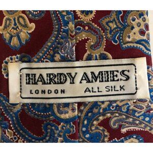 Hardy Amies London Silk Tie Red Blue Beige Paisley Mens Necktie Work Formal Gift
