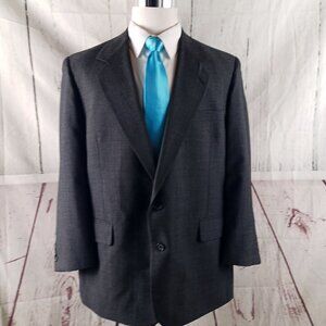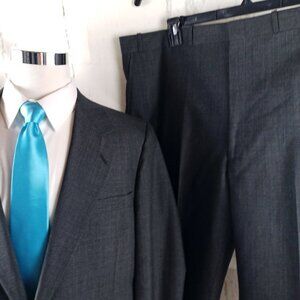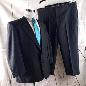 Hardy Amies Savile Row 44PR Wool 2 Button Gray Plaid 2pc Suit 42x26.5 Flat Front