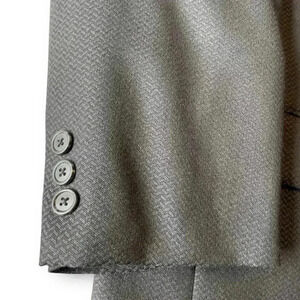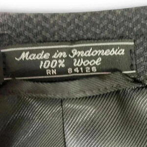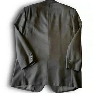 This Hardy Amies blazer is a classic piece crafted from 100% wool in size 42R featuring a charcoal black color and a mid-length cut. Designed for men, it offers a regular fit with a notch lapel, 3 button closure, and functional outer pockets with stitching still intact, including inner multi pockets. The blazer is fully lined, adding to its luxury vintage appeal. Suitable for formal occasions, it is a versatile addition to any wardrobe. Made in Indonesia, this blazer requires dry cleaning. This retro classic herringbone print blazer coat is overall in excellent condition, flaw to be noted would be the minor wear mark on back of right shoulder (see last photo) although hardly noticeable nor affects wear.