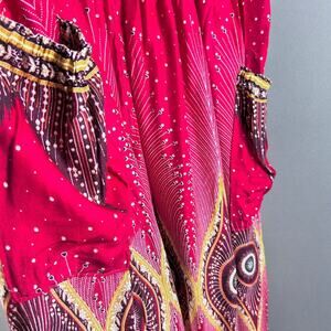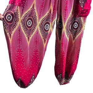 Harem Boho Yoga Hippie Lounge Peacock Print Smocked Baggy Pants Size Small