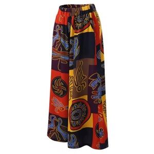 Explore vibrant style with these multicolor patterned wide-leg pants. Perfect for a bold, artistic look.