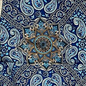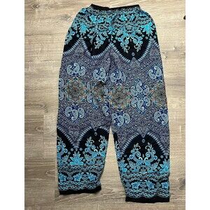 Harem Pants Pocket High Waist Wide Leg Drawstring Blue Paisley Large Hippie Boho