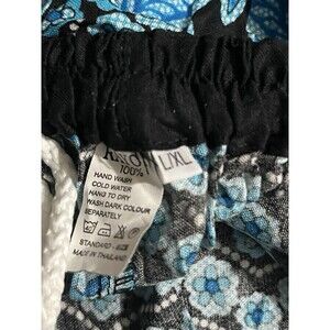Tag Size: L/XL. Review measurements as may run smaller than US sizing. Adjustable Elastic Waist with Drawstring 22 un-stretched to 30 stretched Hips 48 Inseam 29 Waistband 3/4 Rise 14 inches. 100% Rayon. Made in Thailand. Ships from USA.