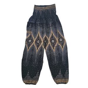 Harem Pants Size EST S Boho Yoga Peacock Print Elastic Waist Joggers