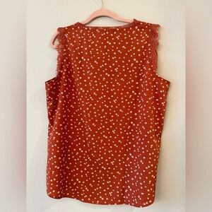 Features: V Neck, Sleeveless, Pretty Lace Trim, Solid Color, Flower Pattern. Loose Fit Sleeveless Shirts.