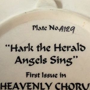 Plate no. A129. Hark the Herald Angels Sing. First issue in Heavenly Chorus. The limited edition closes forever on the 25th day of December 1996. The Bradford Exchange 1994. Can hang on wall or has stand. musical