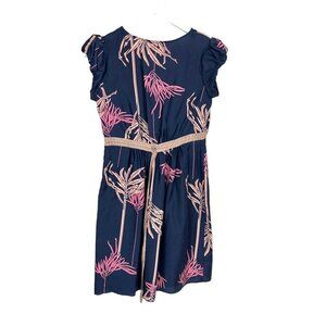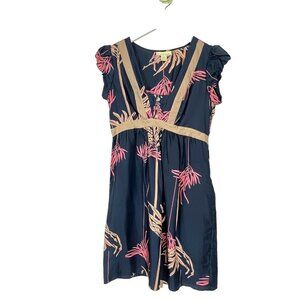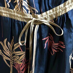Harkam Dress Women Size 2 Navy Silk Printed Floral Empire Tie Gathered A-Line